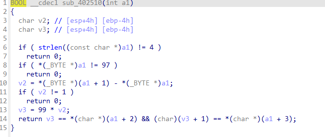 v2 = ord(a1[1]) - ord(a1[0]) # v2 = 1