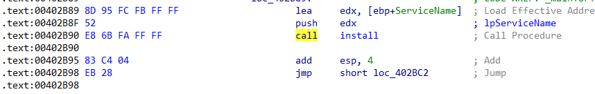 经过我们上面这么多步骤的分析,不难想到,这一个选项便是”install”了,但我们依然分析一下安装过程它做了哪些操作。同样的参数为3、4两种分支,但结合-re的过程,不难猜出4个参数便是指定了文件名,因此,我们只分析3参数情况便够了。