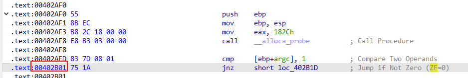 接下来我们会发现程序的入口点并不在main函数处,而是位于PE文件指定的入口点。我们根据IDA的分析可以得知,main函数位于0x402AF0,因此我们只需要进入call 0x402AF0操作的内部便可以了