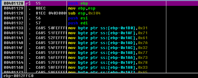 同理,当前入口点并不是main函数,我们结合IDA信息,判断出main函数地址为0x401128,在dbg中直接步入main函数