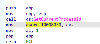 发现在此写入了GetCurrentProcessId的返回值,因此DLL1的magic数字为当前进程ID