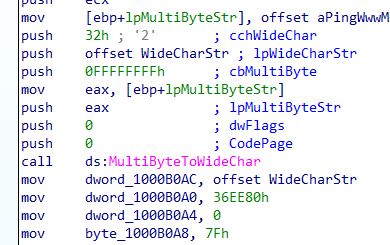 我们再看一下DLL3会打印出什么,结合MultiByteToWideChar的操作,可以知道,WideCharStr中将存放着转换后的网址宽字符字符串