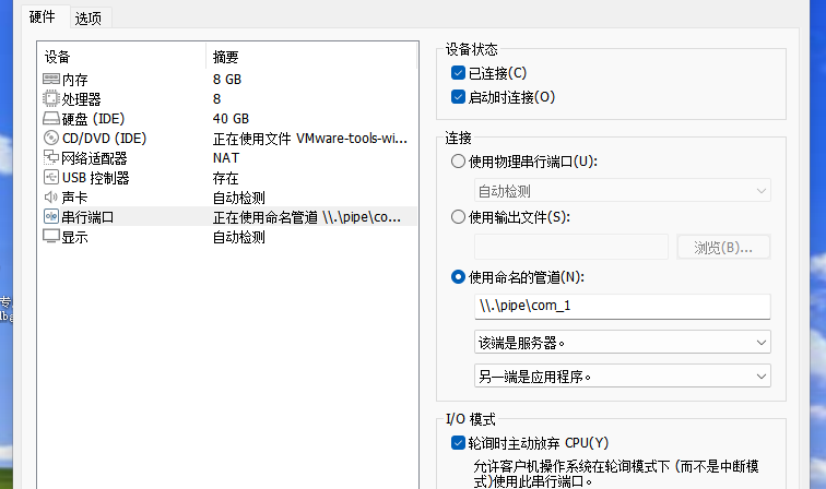 然后我们在虚拟机设置中再新添串口,配置如图所示
